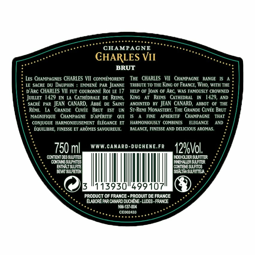 - Le Champagne Canard-Duchêne Charles VII Brut est une cuvée exclusive alliant élégance et finesse, parfaite pour les occasions spéciales.