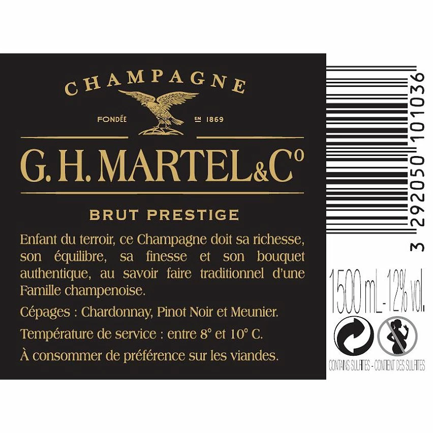 - Paiement sécurisé disponible. Offrez-vous ou offrez à vos proches un moment de luxe avec le Champagne G.H. Martel Prestige Brut.