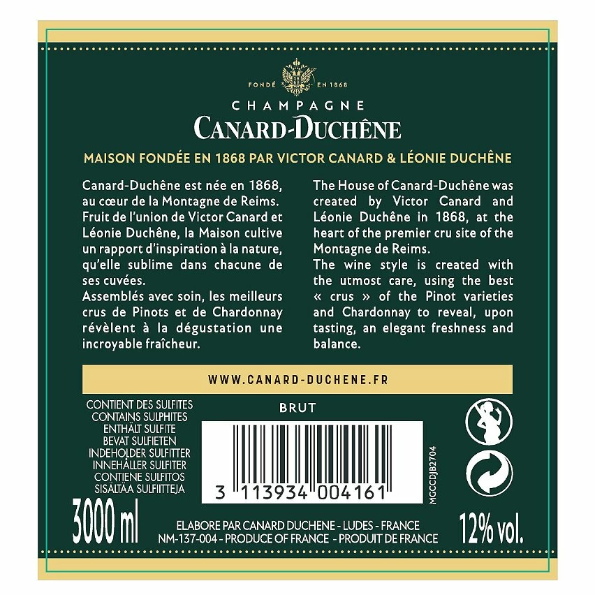 - Le Jéroboam Champagne Canard-Duchêne Brut est un choix prestigieux pour vos moments spéciaux. Son format de 300 cl est idéal pour les grandes occasions.
