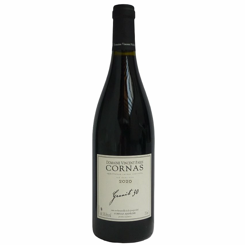 - Le Domaine Vincent Paris Granit 30, 2020 est un vin rouge exceptionnel de l’appellation Cornas AOP, produit à partir de vieilles vignes cultivées sur des sols granitiques.
