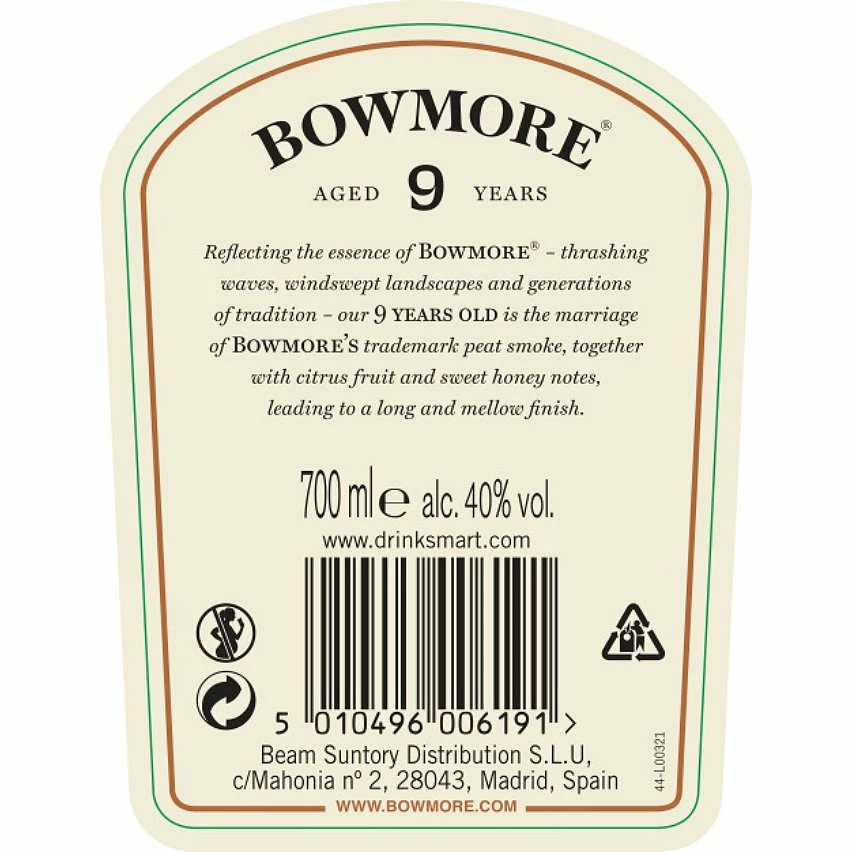 - Plongez dans l’univers des whiskies de légende avec le Whisky Single Malt Bowmore 9 ans. Ce produit est issu de l’une des distilleries les plus anciennes d’Écosse, connu pour sa qualité exceptionnelle.